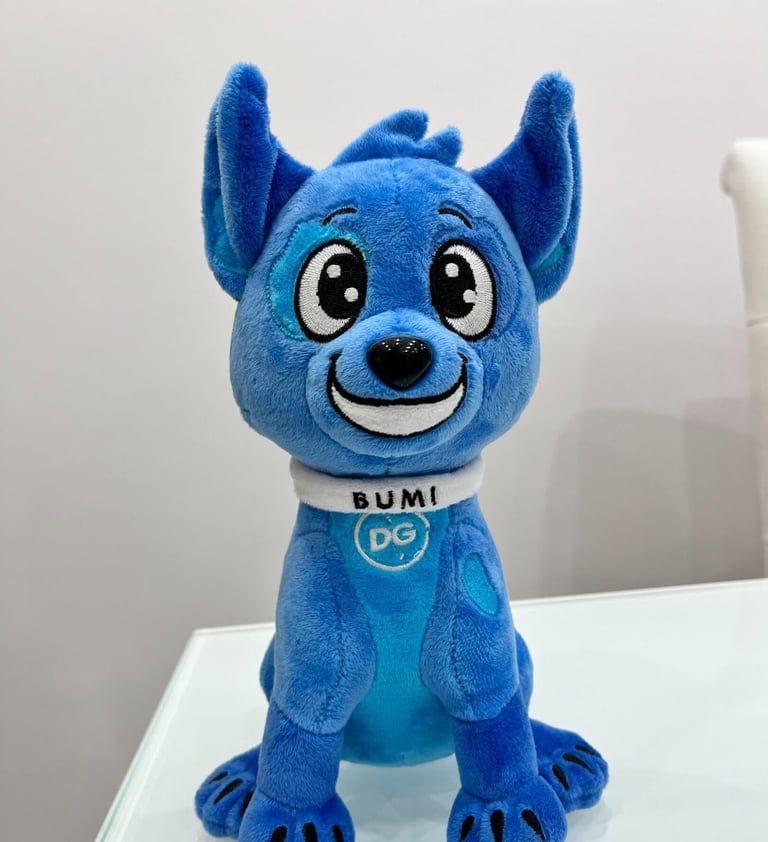 Todos los seguidores dibujaron a un perrito azul, y comenzó el nacimiento de Bumi, la nueva mascota de DeGoBooM, cientos de dibujos dieron forma a este increíble canino.